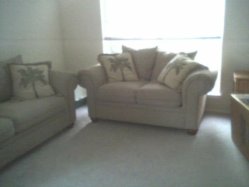 We finally got new couches for our front room. We wanted to get a sleeper sofa so that we had somewhere for guests to sleep. People have asked for a picture, so here it is!